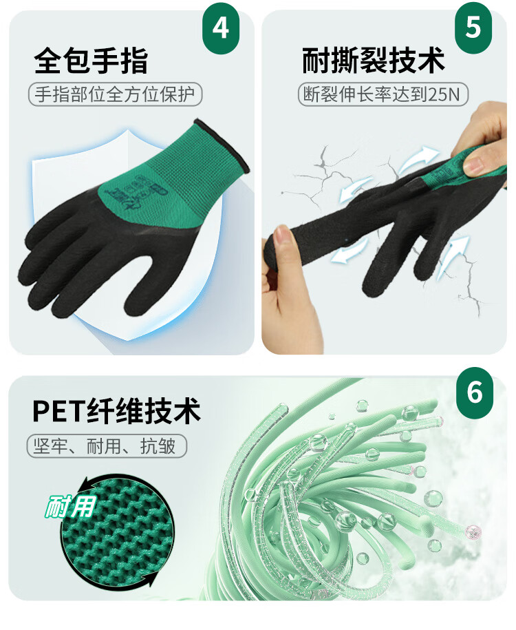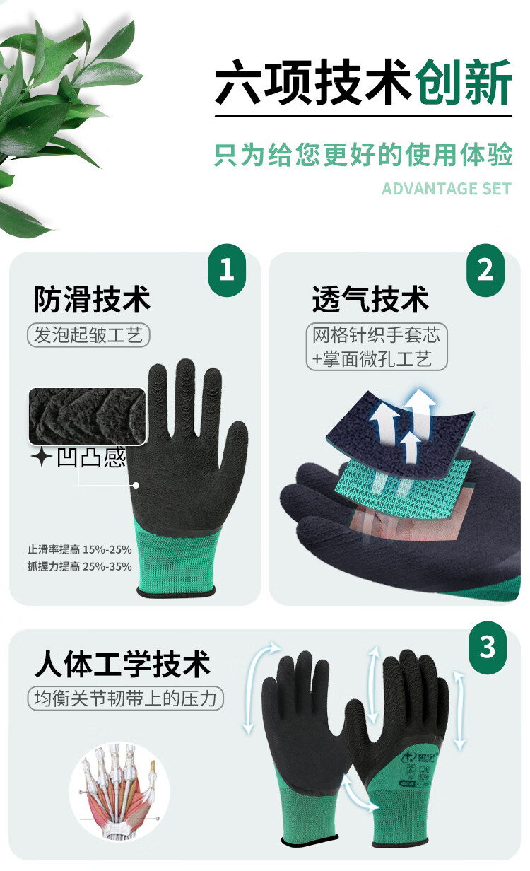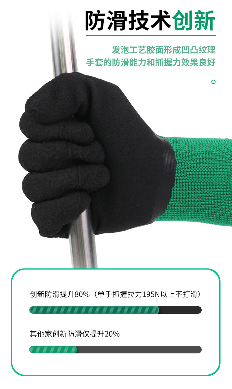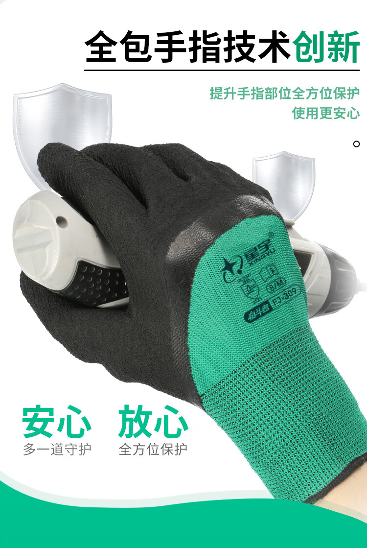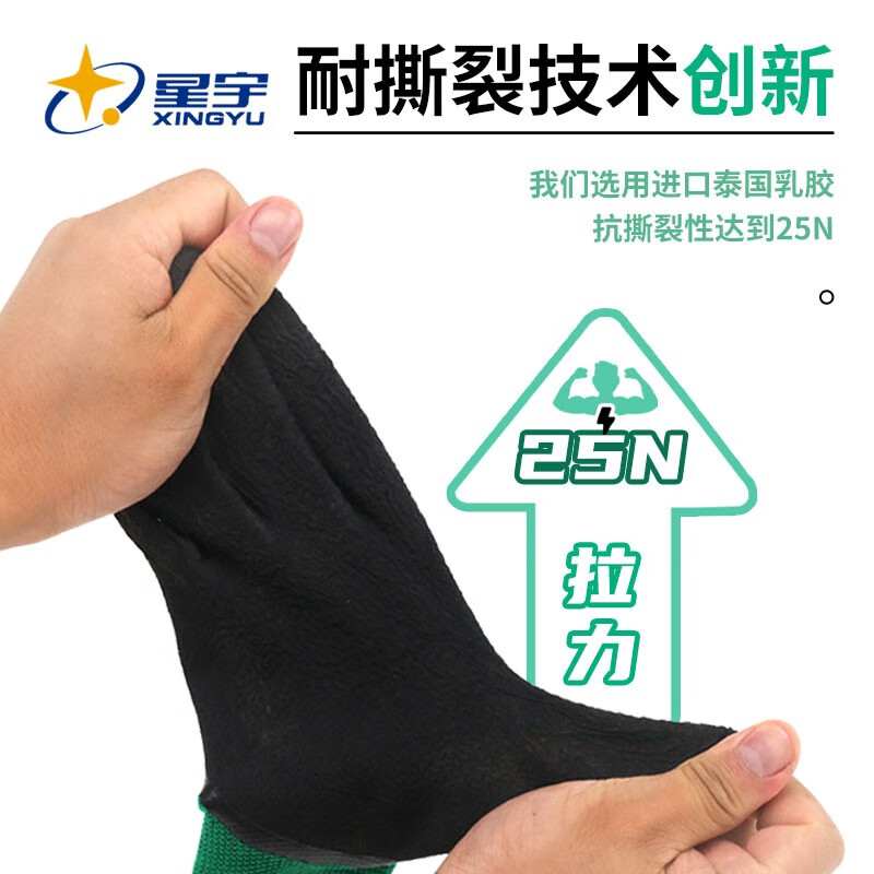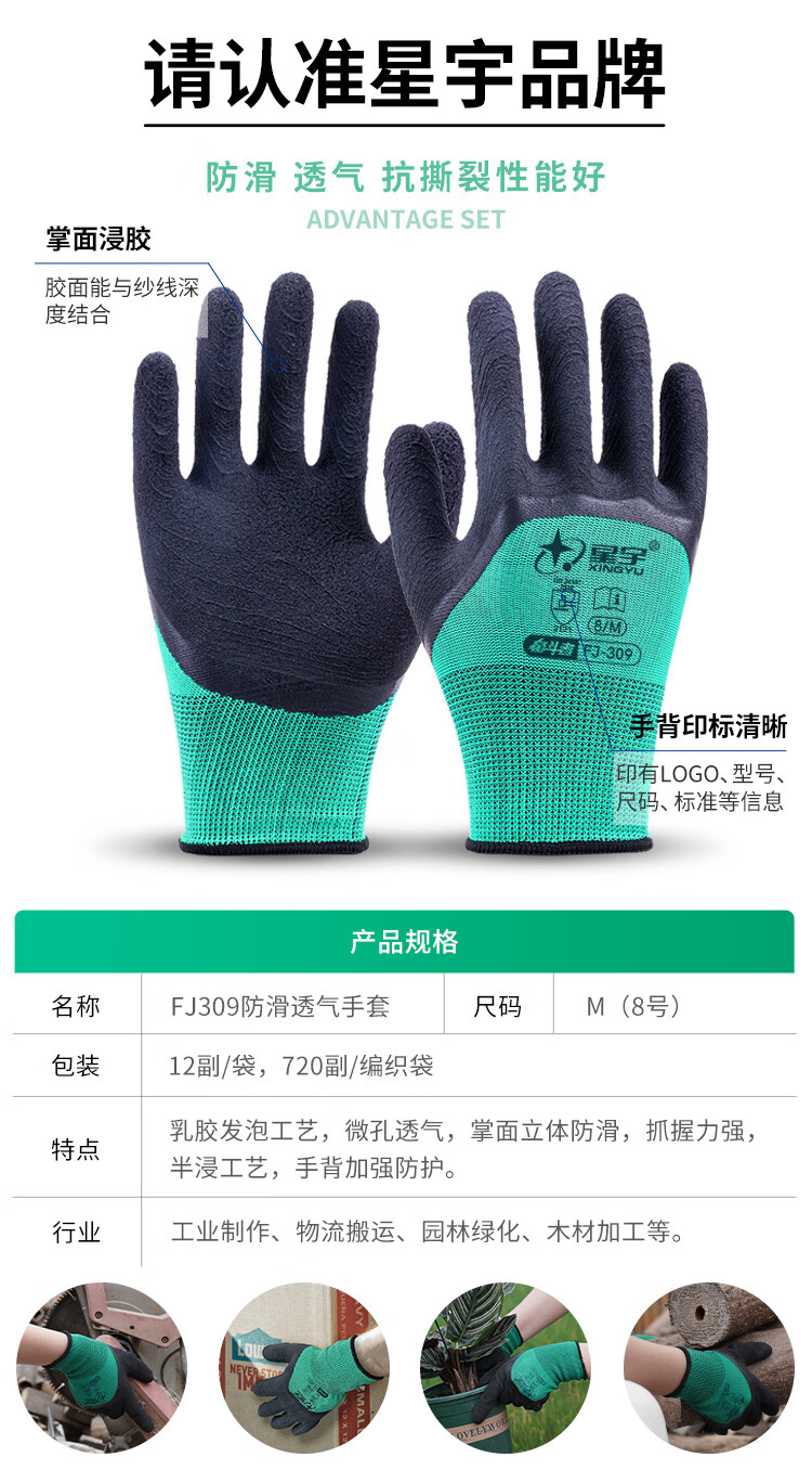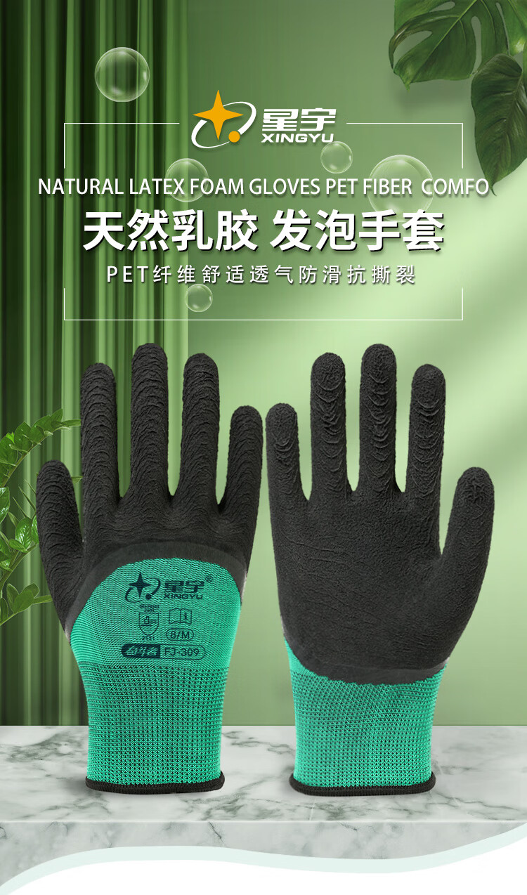 星宇 浸胶劳保手套 乳胶发泡半挂耐用防滑柔软舒适透气 工业工地工作木工汽修建筑防护手套 12付 【进口胶】 FJ309 M码